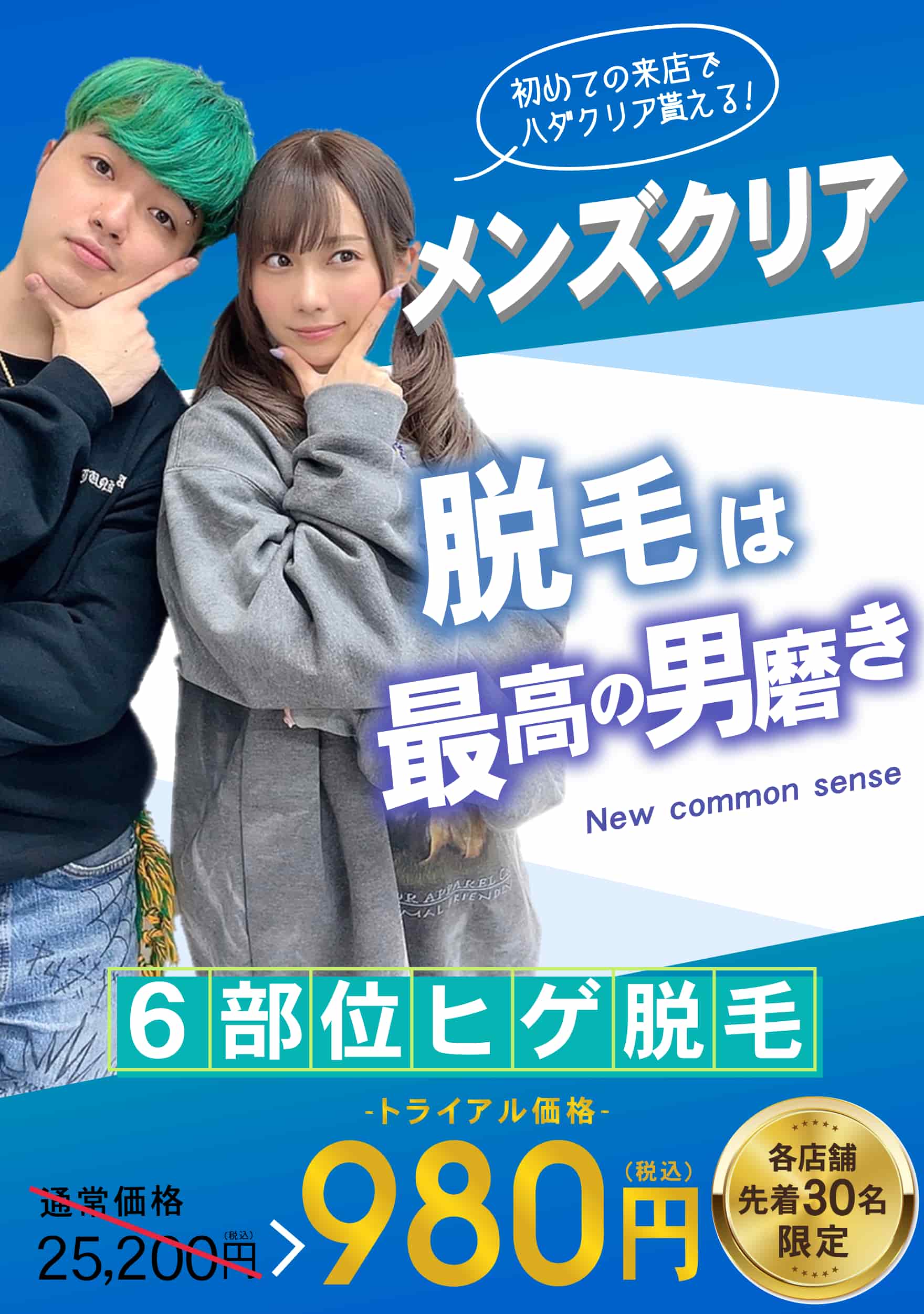 ヒゲ脱毛が980円(税込)で試せるんです!